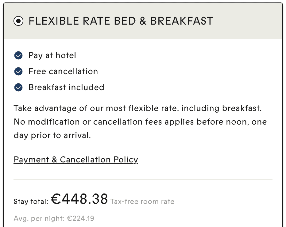 Interestingly, the hotel does not lower it’s prices in summer, meaning that your savings of ~35% even consist during the summer. In autumn 2026, the savings are even a bit higher, with the room normally costing ~€250 with breakfast, e.g. in November.